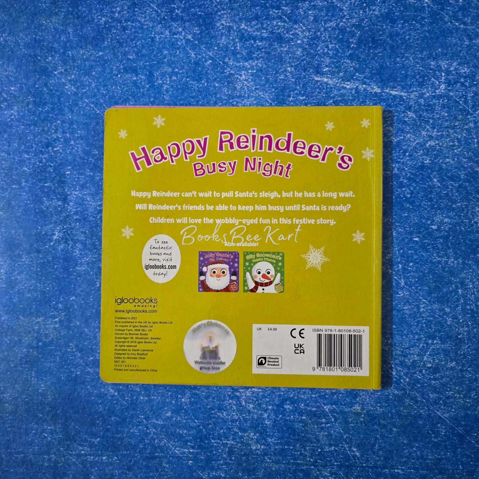 Happy reindeer can't wait to pull santa's sleigh , but he has a long wait . Will reondeer's friends br able to keep him busy until santa is ready ? Children will love the wobbly-eyed fun in this festive story.