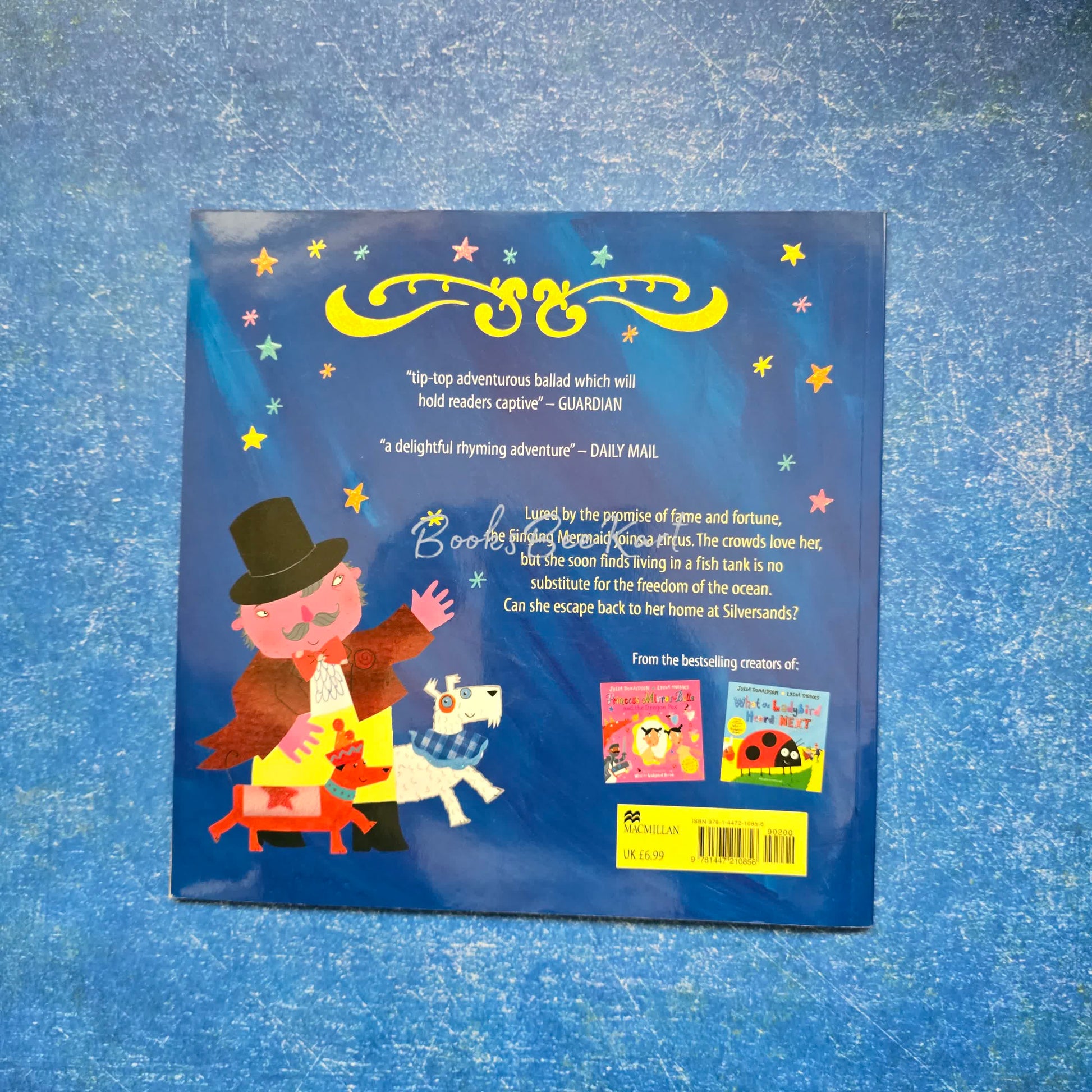 Join the Singing Mermaid in a circus adventure as she attempts to escape back to her seaside home in this lyrical story. Now in a classic board book format with a fresh cover design.Tempted by the promise of fame and fortune, the Singing Mermaid joins a circus. The crowds love her, but the poor mermaid is kept in a tank by the wicked circus owner Sam Sly, and she soon longs to return to the freedom of her ocean home.The Singing Mermaid is a delightful tale from the stellar picture book partnership of Julia Donaldson and Lydia Monks, creators of What the Ladybird Heard. With brilliant rhyming verse, bright and distinctive illustrations and a gorgeously glittery cover, this story is loved by children and parents alike.